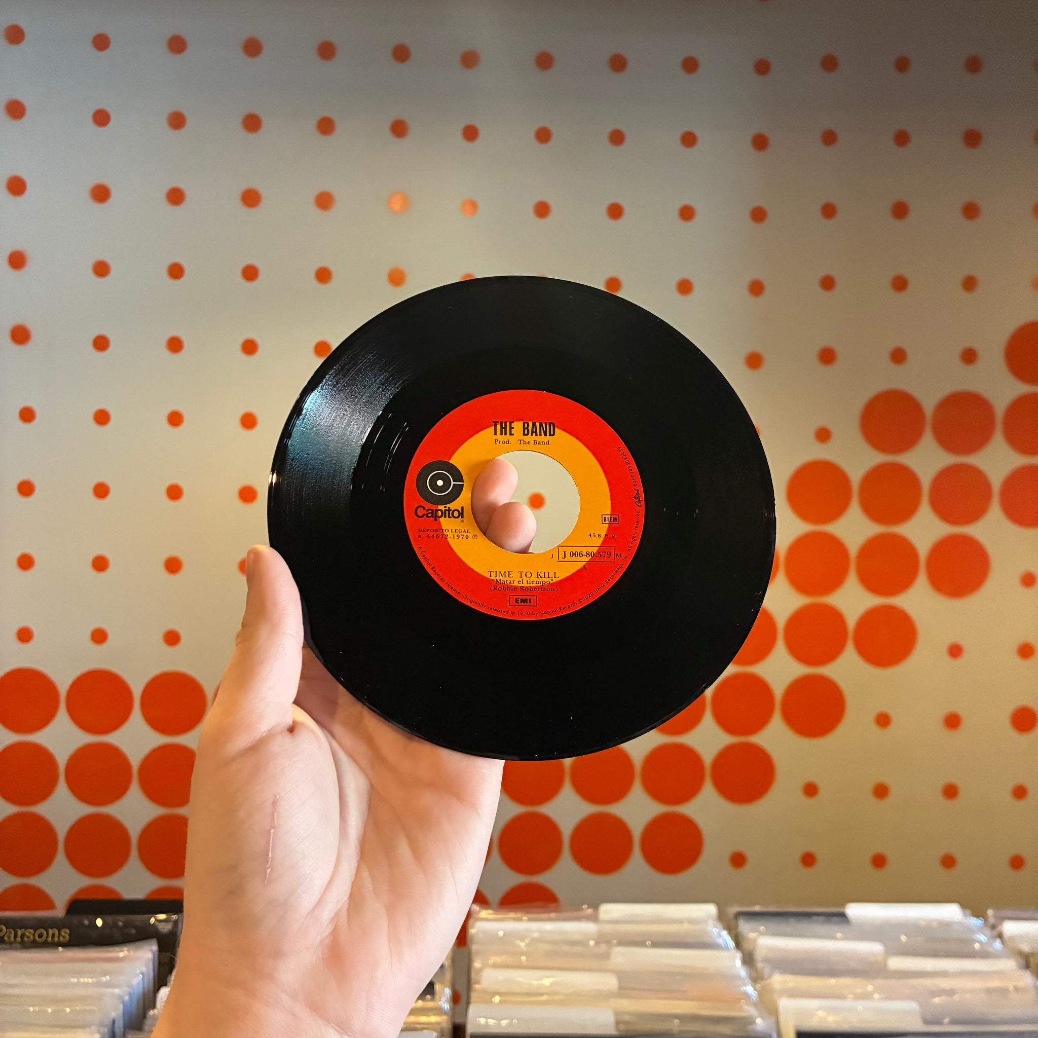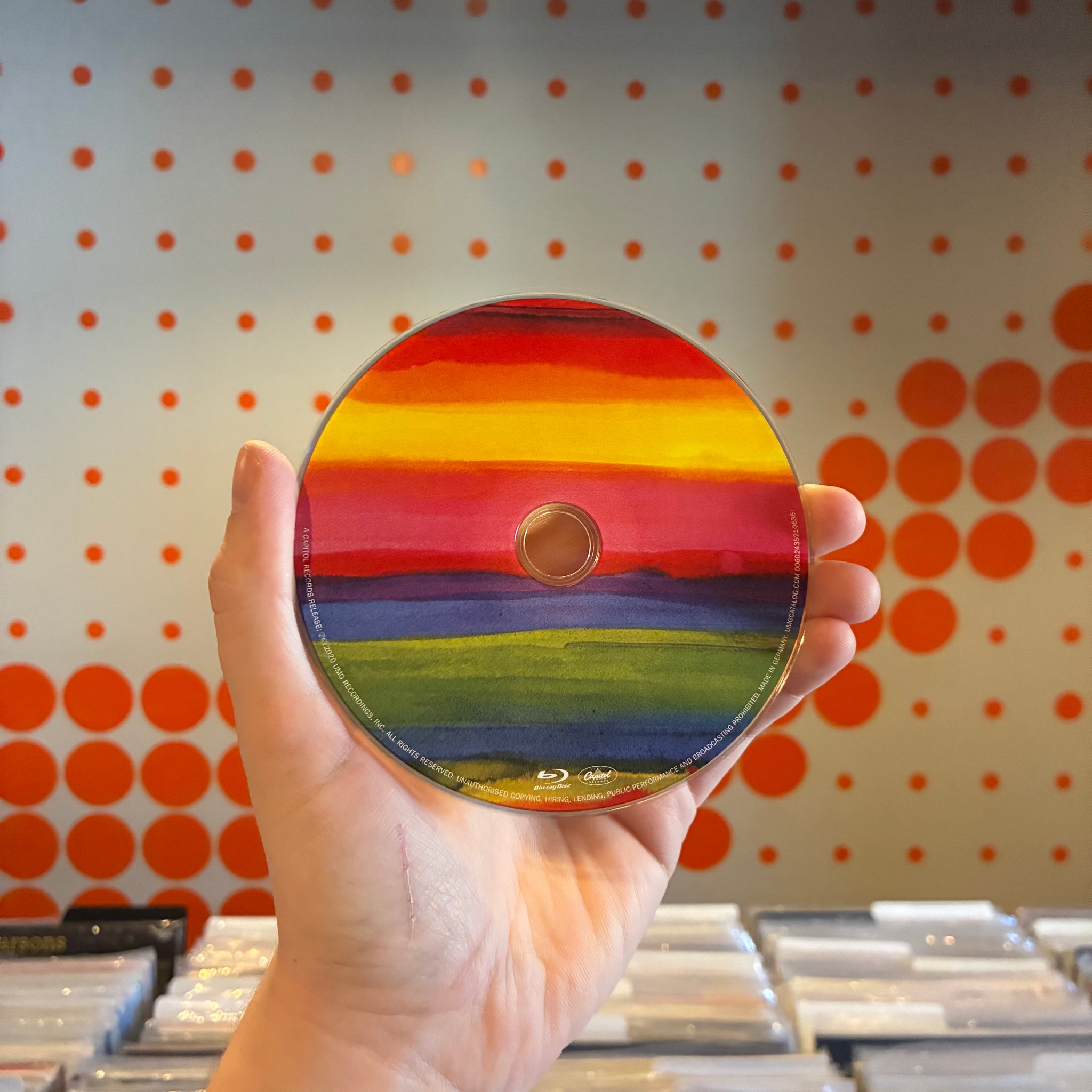 A SMALL DING ON THE RIGHT EDGE OF THE FRONT COVER ON THE OUTER BOX. FEW SIGNS OF WEAR ON THE OUTER BOX OTHERWISE. SHARP CORNERS AND NO NOTICEABLE SIGNS OF WEAR ON THE VINYL OUTER JACKET. CLEAN LABEL AND NO MARKS OR SCRATCHES ON THE 7". CDs AND BLU-RAY DISCS ARE CLEAN.