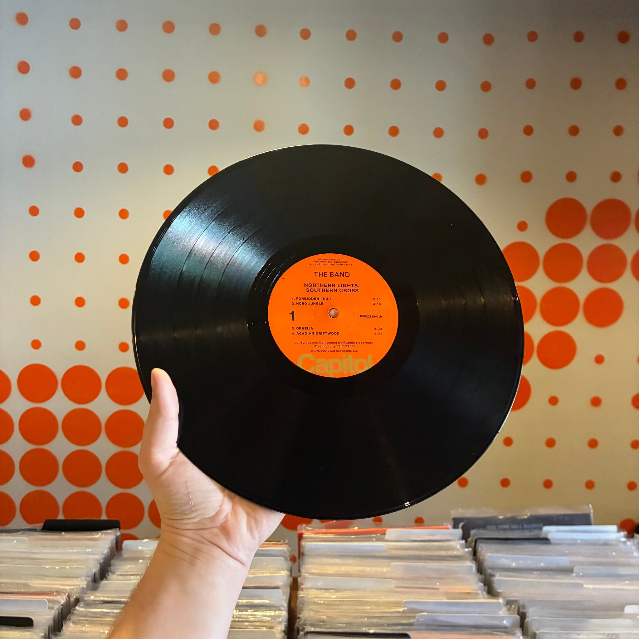 SOME MINOR CORNER ROUNDING AND VERY LIGHT CREASING NEAR THE BOTTOM EDGE OF THE OUTER BOX. SOME VERY SMALL TO NOTICEABLE SPINDLE MARKS ON ALL LABELS. VERY LIGHT, INAUDIBLE MARKS ON BOTH SIDES OF THE VINYL FOR NORTHERN LIGHTS - SOUTHERN CROSS. NO NOTICEABLE MARKS OR SCRATCHES ON THE VINYL OTHERWISE.