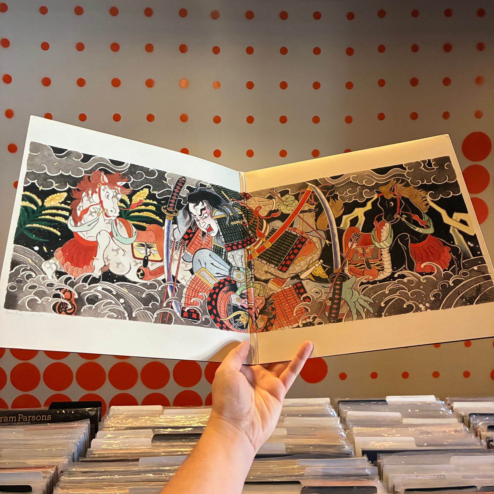 A NOTICEABLE DING ON THE TOP RIGHT CORNER OF THE FRONT COVER. FEW NOTICEABLE SIGNS OF WEAR ON THE OUTER JACKET OTHERWISE. SMALL SPINDLE MARKS ON BOTH LABELS. NO NOTICEABLE MARKS OR SCRATCHES ON THE VINYL. WE'VE STORED THE VINYL IN AN ARCHIVAL INNER SLEEVE SINCE CLEANING.