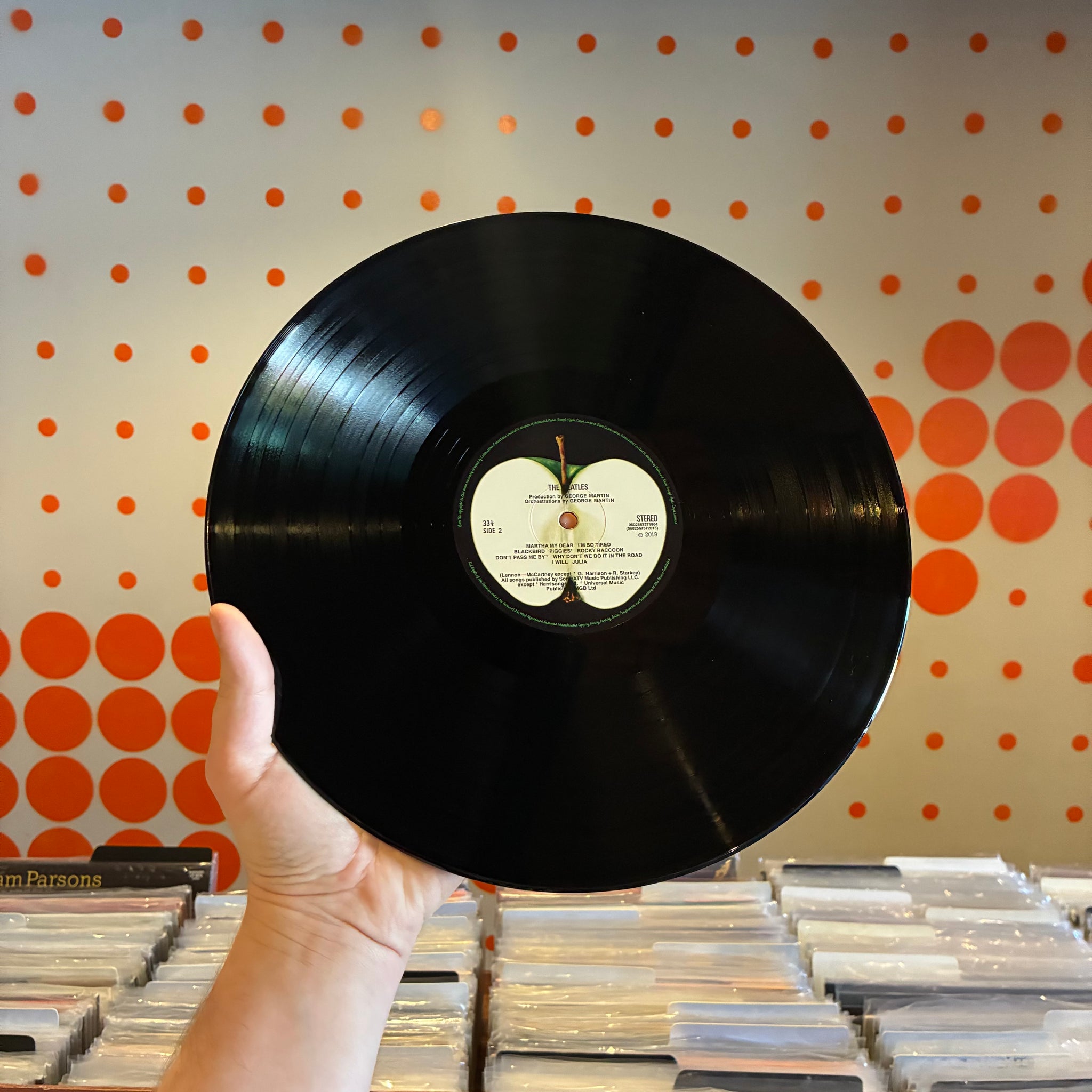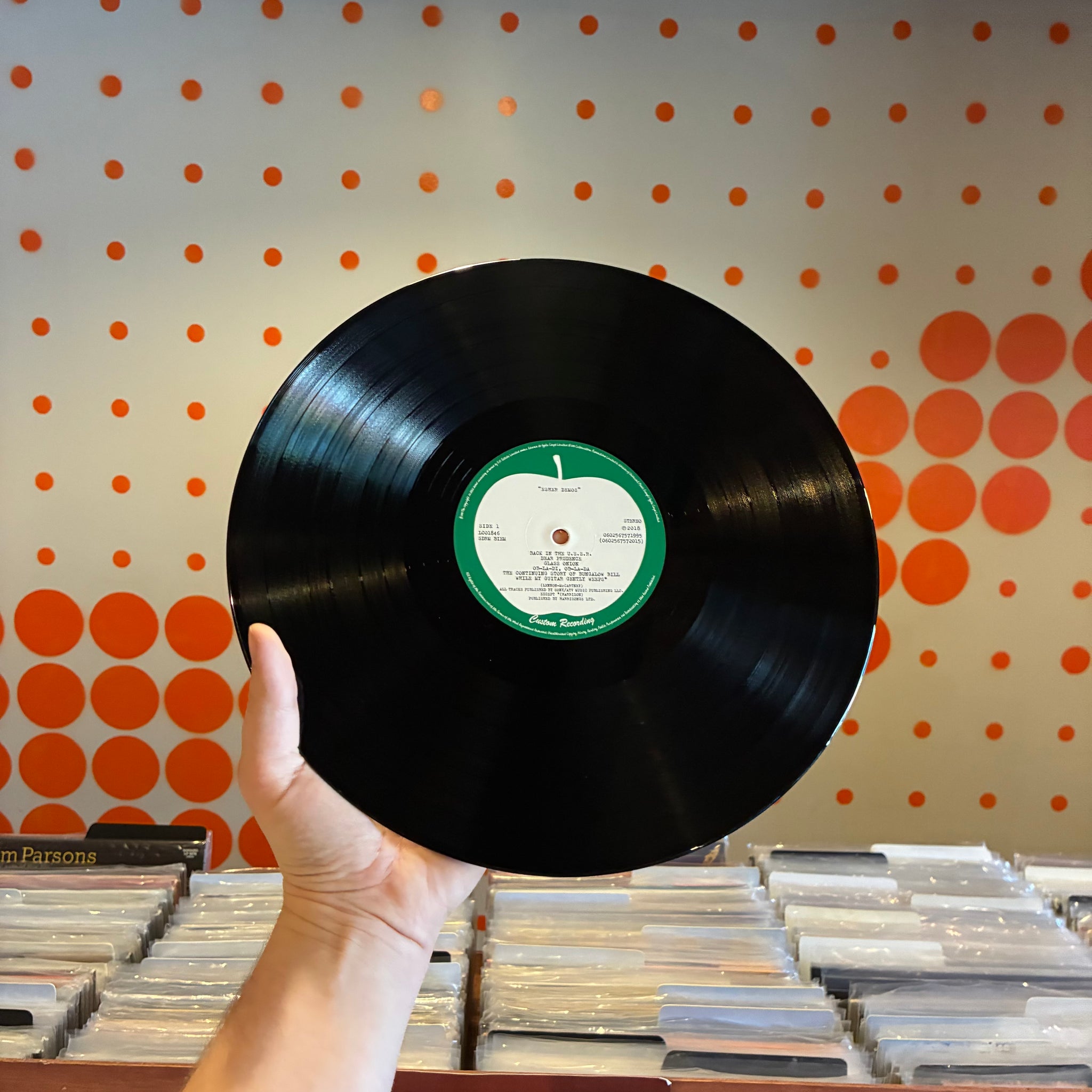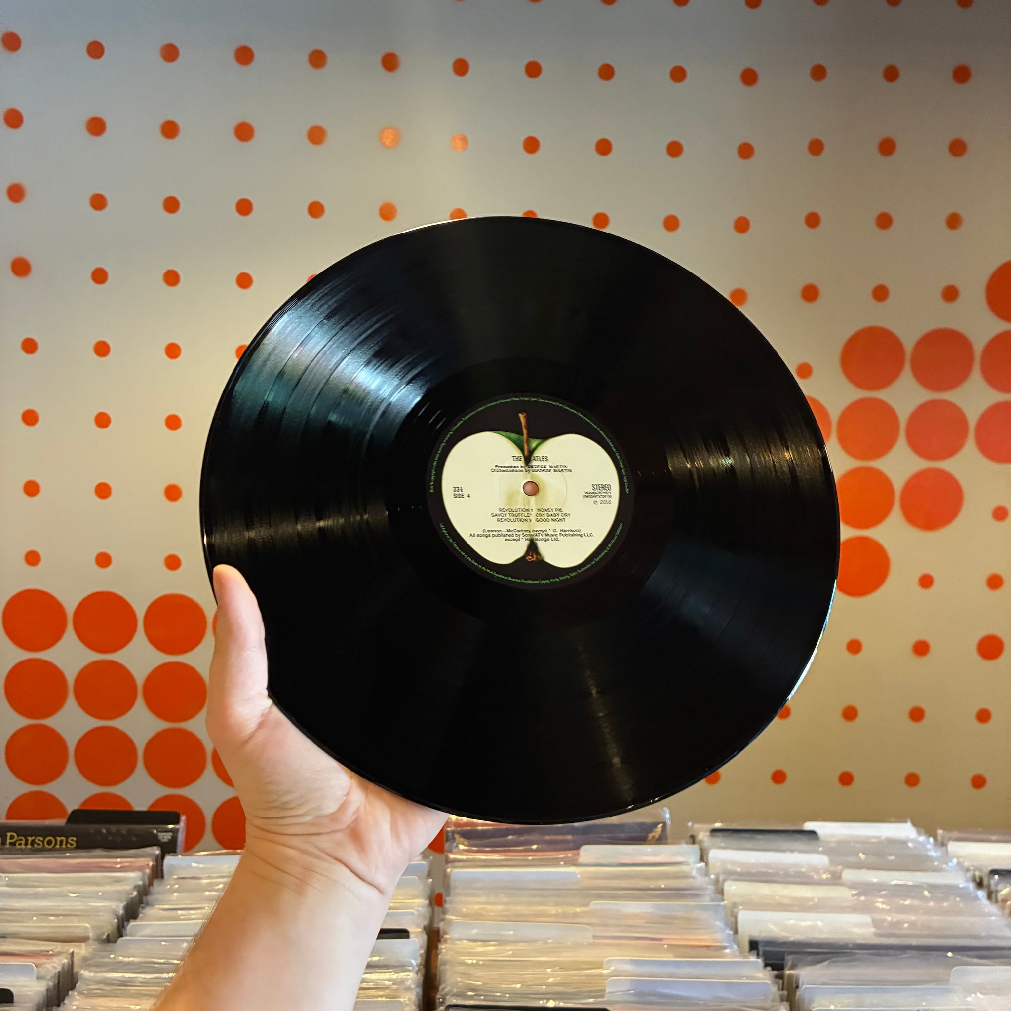 SHARP CORNERS. NO NOTICEABLE SIGNS OF WEAR ON THE OUTER BOX. SMALL SPINDLE MARKS ON WHITE ALBUM DISC, SIDES 1, 2 & 3 LABELS. STRAY MARKS ON SIDE 1 OF THE WHITE ALBUM AND SIDE 2 OF THE ESHER DEMOS ARE INAUDIBLE. WE'VE STORED THE VINYL IN ARCHIVAL INNER SLEEVES SINCE CLEANING.