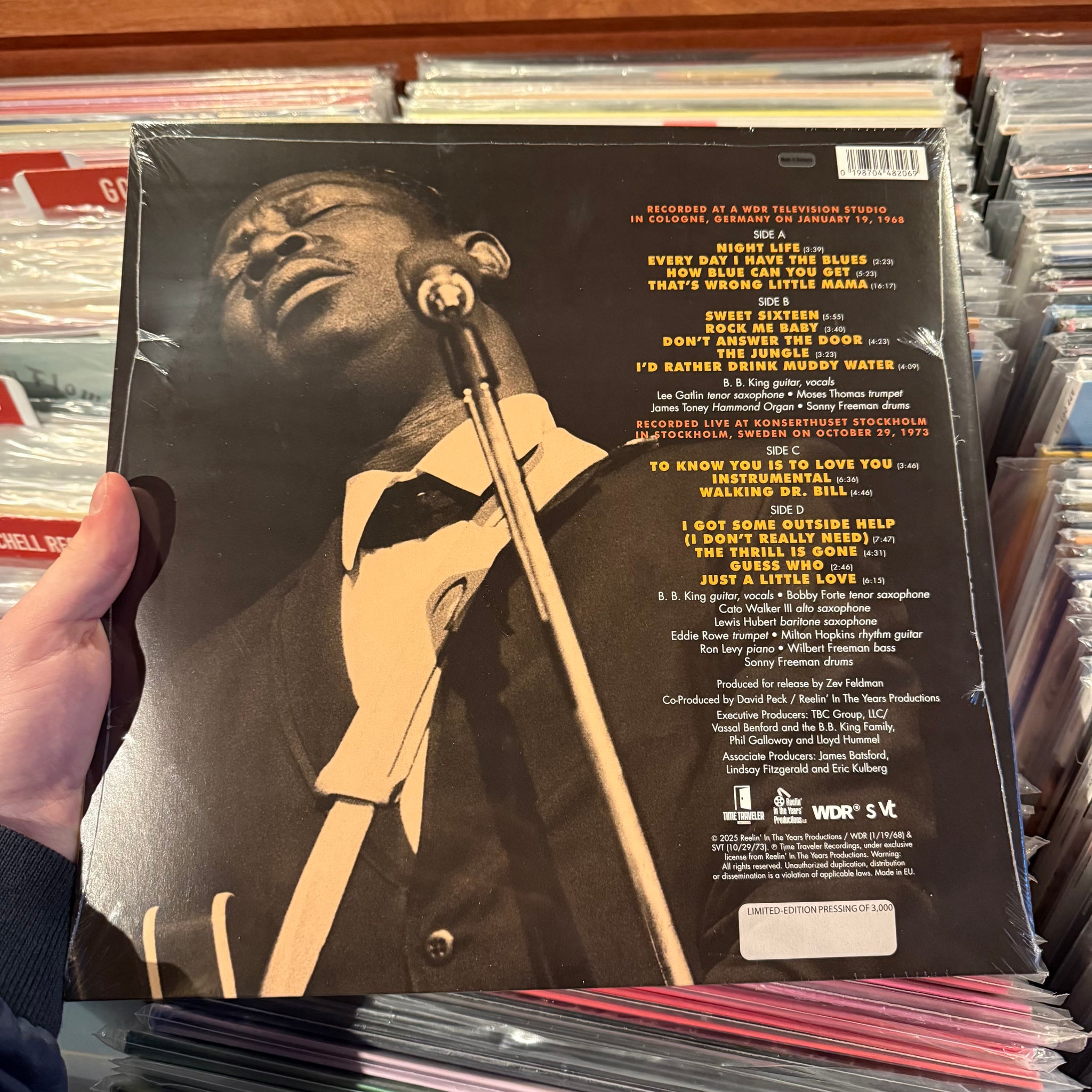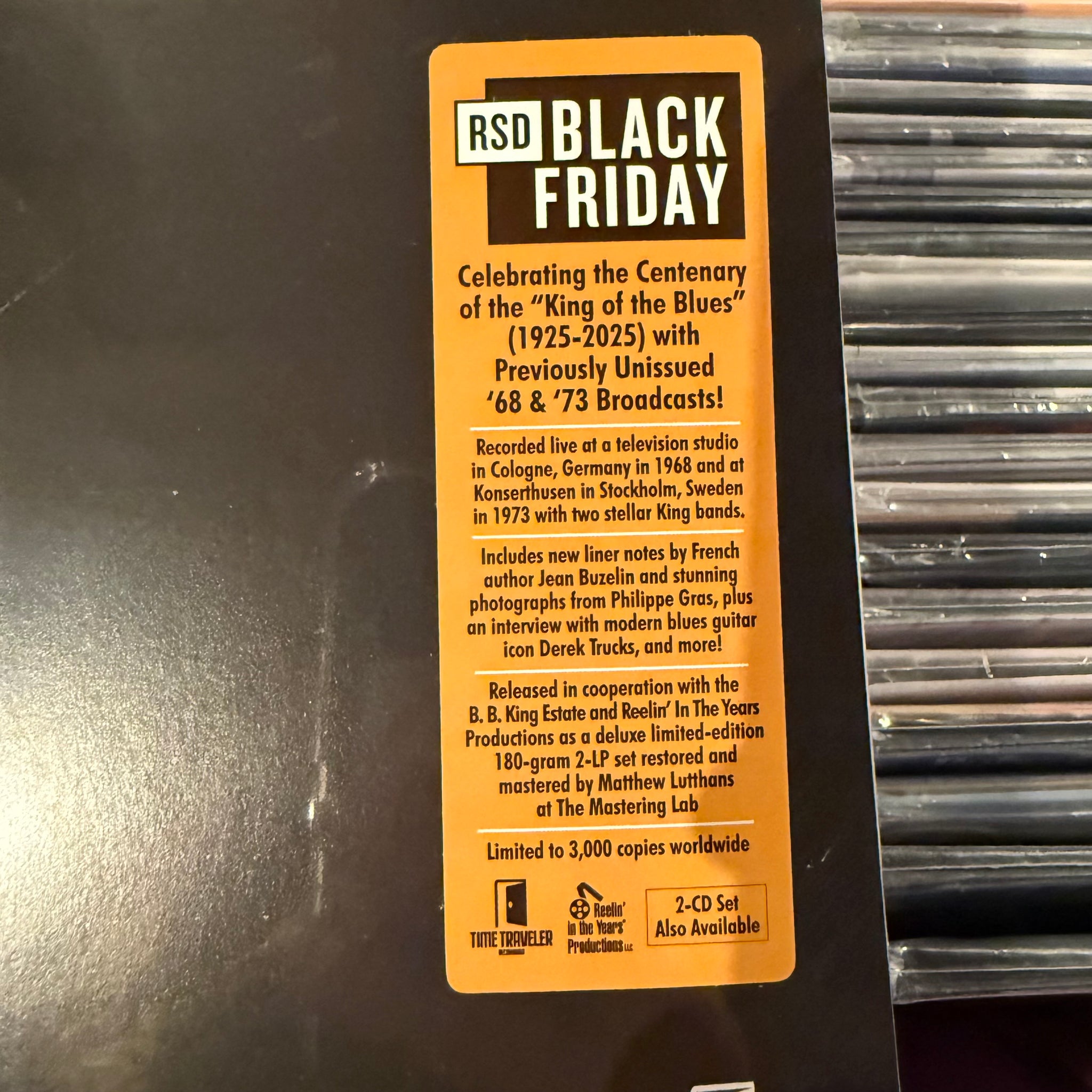 "Broadcasting The Blues: Live From Germany and Sweden is the first official release of two concerts from the "King of the Blues”: recorded live for the "Swing In" TV show on January 19, 1968 and broadcast on WDR in Germany, and at the Stockholms Konserthus in Sweden on June 22, 1974 on broadcast on Swedish television. This is an official release in cooperation with the B. B. King Estate and Reelin' in the Years Productions. Transferred from the original tapes and restored and mastered by Matthew Lutthans at The Mastering Lab, Live in Europe was pressed at the respected audiophile pressing plant Le Vinylist in Quebec, Canada. The limited-edition 180g 2-LP edition (and deluxe 2-CD set) includes an extensive booklet with rare photographs, newly-commissioned liner notes, and interviews and testimonials from artists who were inspired by B. B. King."